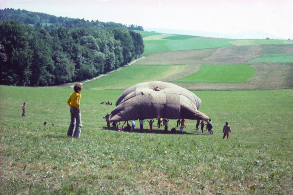 Dass Militär-Blachen fliegen und Personen tragen können, wurde eher zufällig entdeckt. Die Experimentierfreude und die Neugierde der Rover wurde dabei so richtig entfacht. 1976 waren sie eigentlich als Helfer für das Pfingstlager der Pfader auf dem Bözberg engagiert. Vom Ehrgeiz gepackt, liessen sie alles liegen und knüpften aus 35 Blachen ein riesiges Segeltuch zusammen. Am Ende wollten alle Drachenfliegen.
